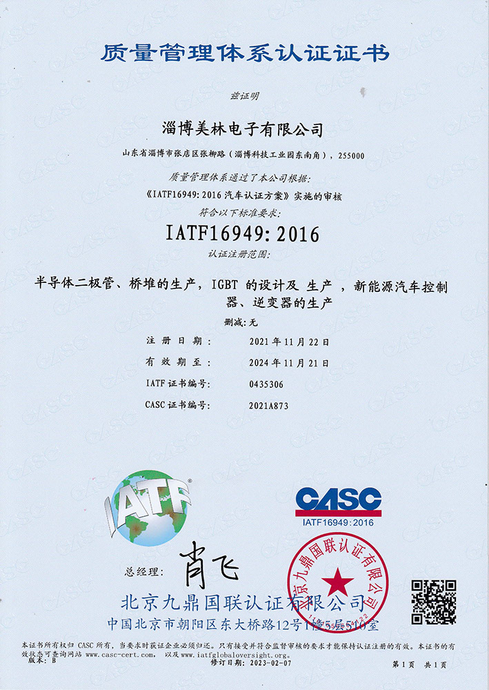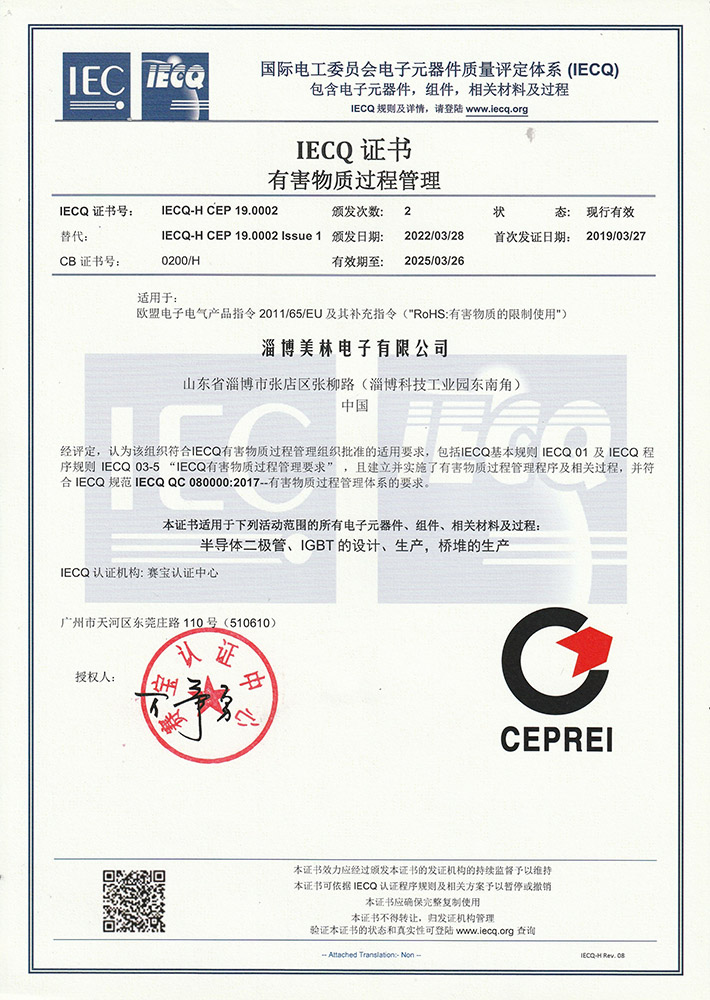 美林電子先后通過了ISO9001、IATF16949、QC080000等質(zhì)量體系認證和有害物質(zhì)過程管理體系認證,通過了ISO14001環(huán)境管理體系認證、ISO45001職業(yè)安全健康管理體系認證和AEC-Q101、UL等產(chǎn)品認證。